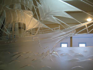 施主様のご希望で海上の迫力のある帆船をデザインしました。