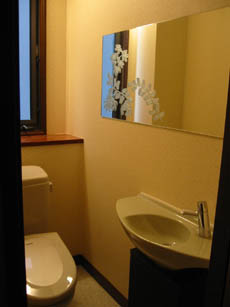 トイレや洗面の鏡の大きさや形を変えてみたり、ワンポイントのエッチングでおしゃれな空間に演出出来ます。